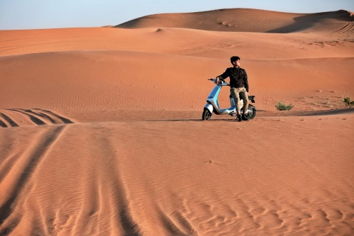 和城市不同,沙漠里可没有地方充电,也没有换电站。此次阿拉善试骑活动,经历了沙漠,戈壁、滩涂、公路等各种路段的骑行,总骑行里程约有40公里,但电量还剩有50%左右。