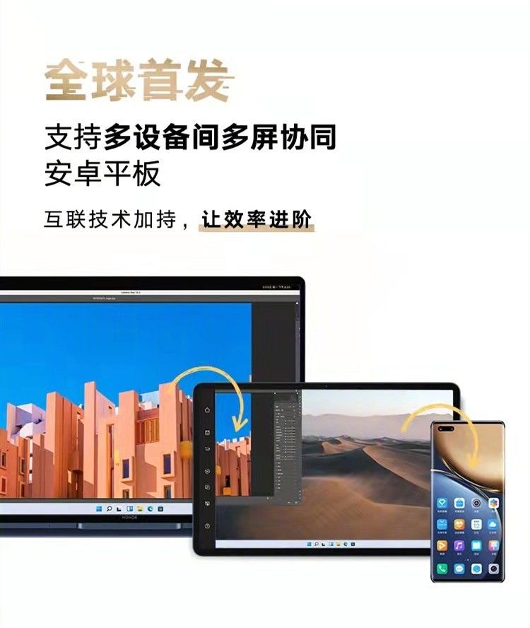 多屏协同则是荣耀互联能力的集中展示。在此功能下,平板与笔记本电脑、平板与手机之间可以跨系统操作,从而让荣耀平板 V7 Pro 化身互联中心,帮助用户完成文档、图片以及视频编辑等相关操作,极大丰富和延伸了移动办公场景,更能满足高端商务人士创作需求。