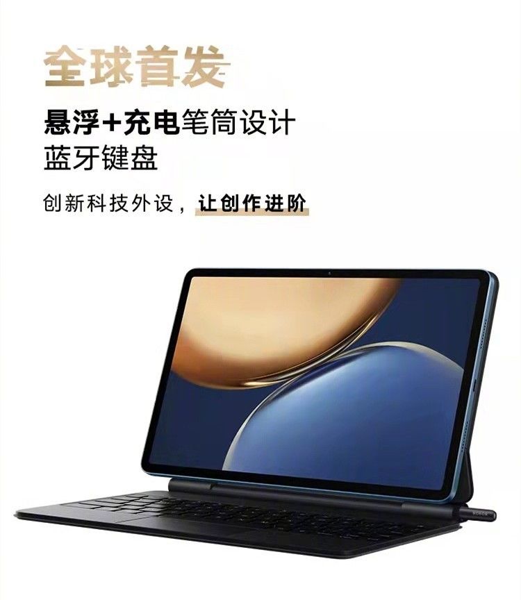 荣耀平板 V7 Pro 生产力特色还体现在配件方面。安卓唯一悬浮键盘和新一代荣耀 Magic-Pencil 2 手写笔,让平板、键盘和笔真正成为一体化的创造力工具;再加上全球首创「笔筒」设计,轻松实现对手写笔的收纳及充电,便携、防丢失的同时更体现出荣耀平板 V7 Pro 领先的技术和人性化设计理念。