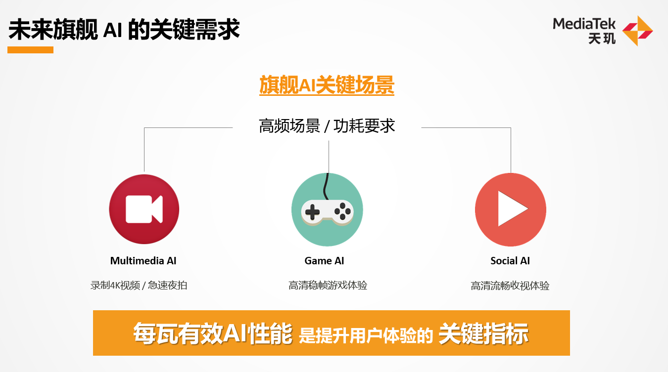 MediaTek 分享了旗舰移动平台在 AI 方面的趋势和挑战,并表示:在拍照、视频、流媒体、游戏等高频应用场景中,相比峰值 AI 算力,每瓦有效 AI 性能才是确保并提升用户长时间稳定体验的关键指标。