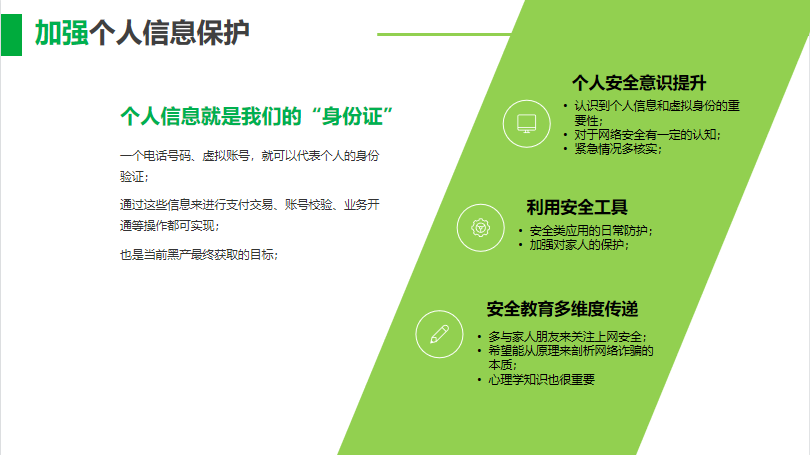 360 手机卫士安全运营负责人葛健强调:「个人应对网络安全时要有一定的认知,充分认识到个人信息和虚拟身份的重要性;紧急情况多核实,多与家人朋友沟通,从原理上来剖析网络诈骗的本质,加强对家人保护;同时还可以下载一些安全类应用进行日常的防护」。