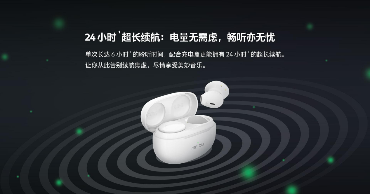 24 小时的超长续航为「小玲珑」魅族 POP3 带来了全天候通勤能力,单次 6 小时音乐续航,配合 400mAh 大容量充电仓,真正做到出行畅听无忧。