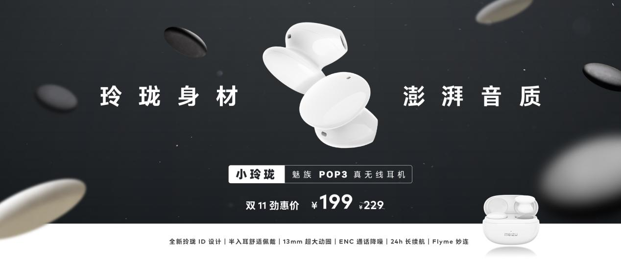 玲珑身材、澎湃音质配合超长续航的「小玲珑」魅族 POP3 真无线耳机于 10 月 26 日 10:00 正式开售。