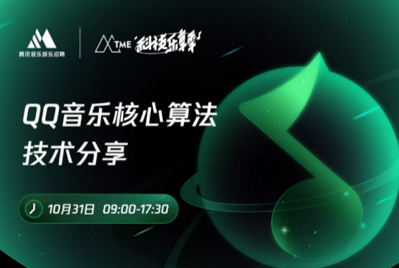 目前,TME 科技乐享季 QQ 音乐核心算法技术专场的直播报名通道现已全面开启,并将于 10 月 31 日 9:00-17:30 与大家准时见面,在分享之后也将与大家交流经验并答疑解惑。更多该场分享的具体信息、未来更多场次安排以及往期「TME 科技乐享季」干货,欢迎持续关注微信公众号「腾讯音乐招聘」,回复关键词「技术干货」即可获取。