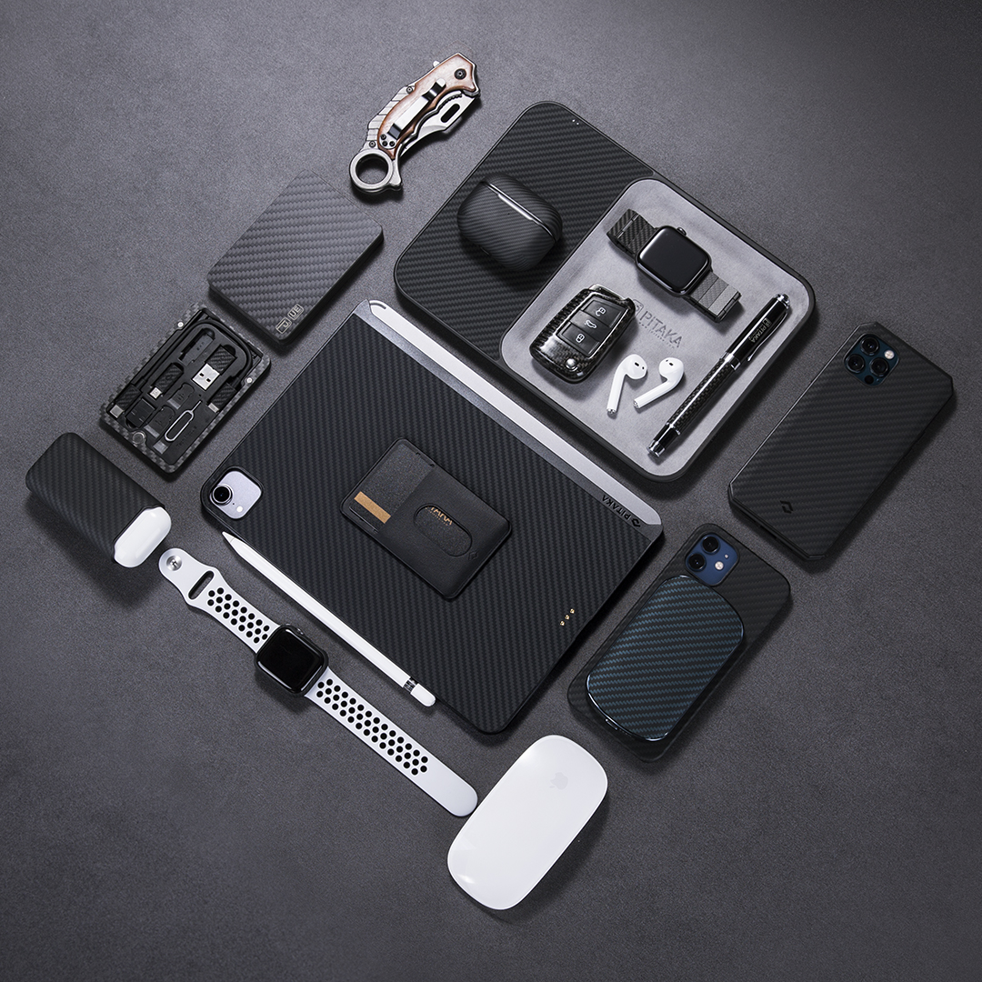于是PITAKA在尝试了100+种材料,做了1000+次试验开模之后,最终选择了对身体无害且珍稀高端,通过欧盟ROHS及REACH认证的芳纶纤维(凯夫拉),作为焕新数码配件的先锋。