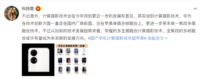 而荣耀 Magic3 系列能够吸引苹果手机用户,凭借的是在影像、设计、AI、隐私报等方面的全能科技实力和创新能力。以影像体验为例,荣耀 Magic3 系列首创多主摄融合计算摄影技术,是手机摄影的一次全新突破。它通过全镜头参与,全焦段融合的计算摄影,丰富捕获信息量,实现全焦段高清影像体验。相较于 iPhone 的单摄多帧融合算法,荣耀 Magic3 系列的多主摄融合计算摄影更能充分释放多摄像头以及融合算法的真实实力。国产计算摄影技术超越苹果,也一度登上热搜。