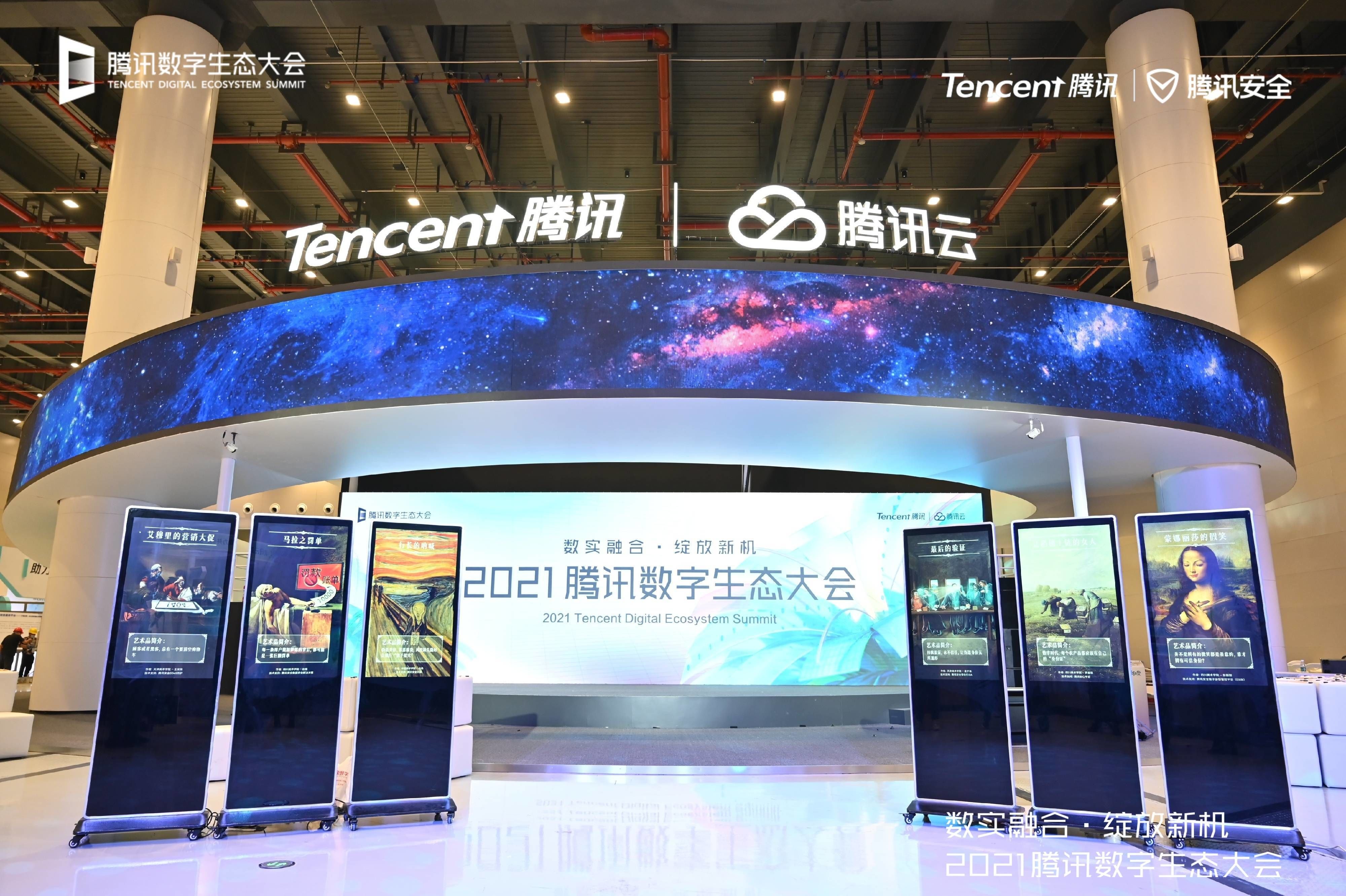 11月4日,2021腾讯数字生态大会进入第二天议程,由腾讯安全主办的云安全专场、数字化业务风控专场召开,与网络安全领域的行业领袖、专家学者等嘉宾围绕数字化进程下产业安全防护和安全体系建设,展开发展趋势洞察、产业创新成果的研讨与分享。由腾讯安全联合三大美院艺术家共同举办的国内首场网络安全主题数字藏品艺术展亮相于两个会场之中,吸引了大批观众驻足欣赏,现场热度不断,展会上发行的限量6007份数字藏品也在线下、线上多个渠道领取一空。