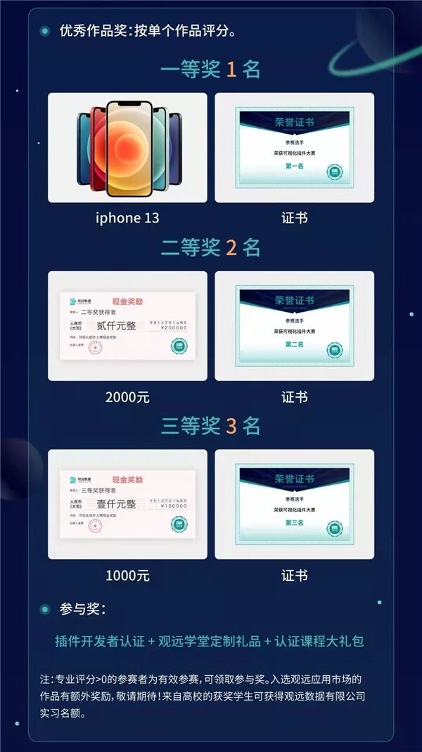 大赛旨在更好的满足企业用户强烈的数据可视化需求,培养更多的插件开发人才,与有能力的开发者携手,打造观远数据开放的应用市场,实现多方共赢!