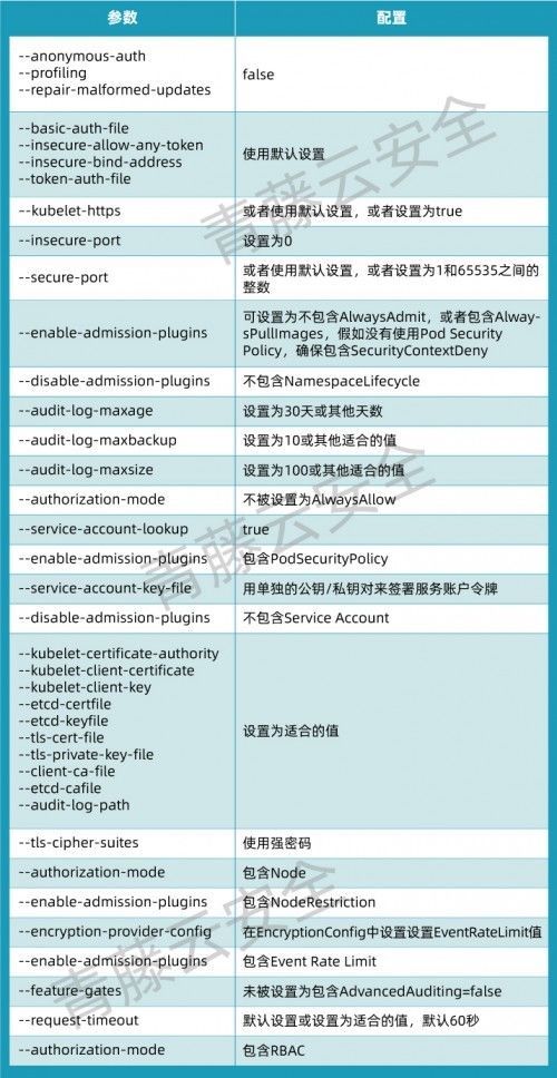 --anonymous-auth 设置为false。常见的错误配置之一是允许Kubelet服务器提供匿名和未经验证的请求。