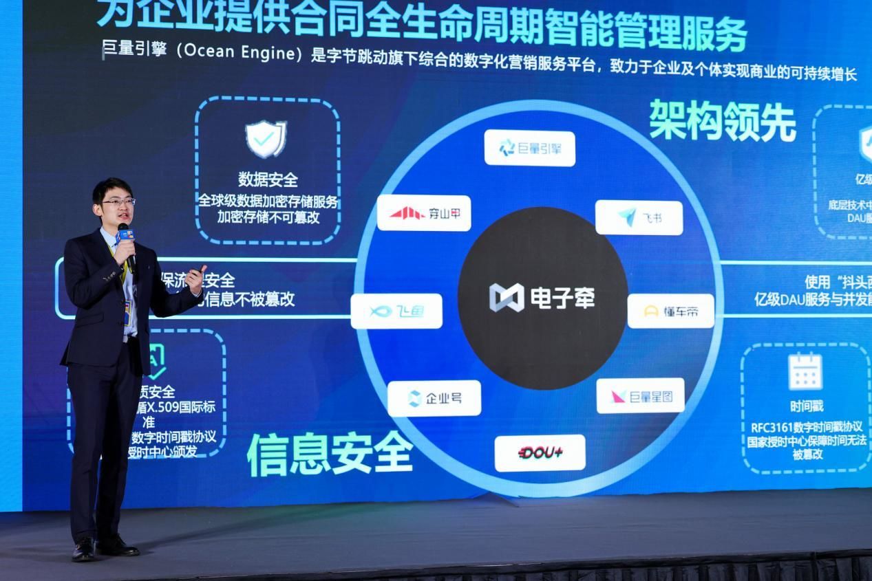巨量引擎电子牵解决方案负责人李金柱出席展会,并向行业伙伴详细展示了电子牵在人力资源服务中的重要价值。在数字化重构人力资源服务方式的进程中,电子牵等电子签约产品将助力人力资源服务行业打破瓶颈,撬动发展新动能。