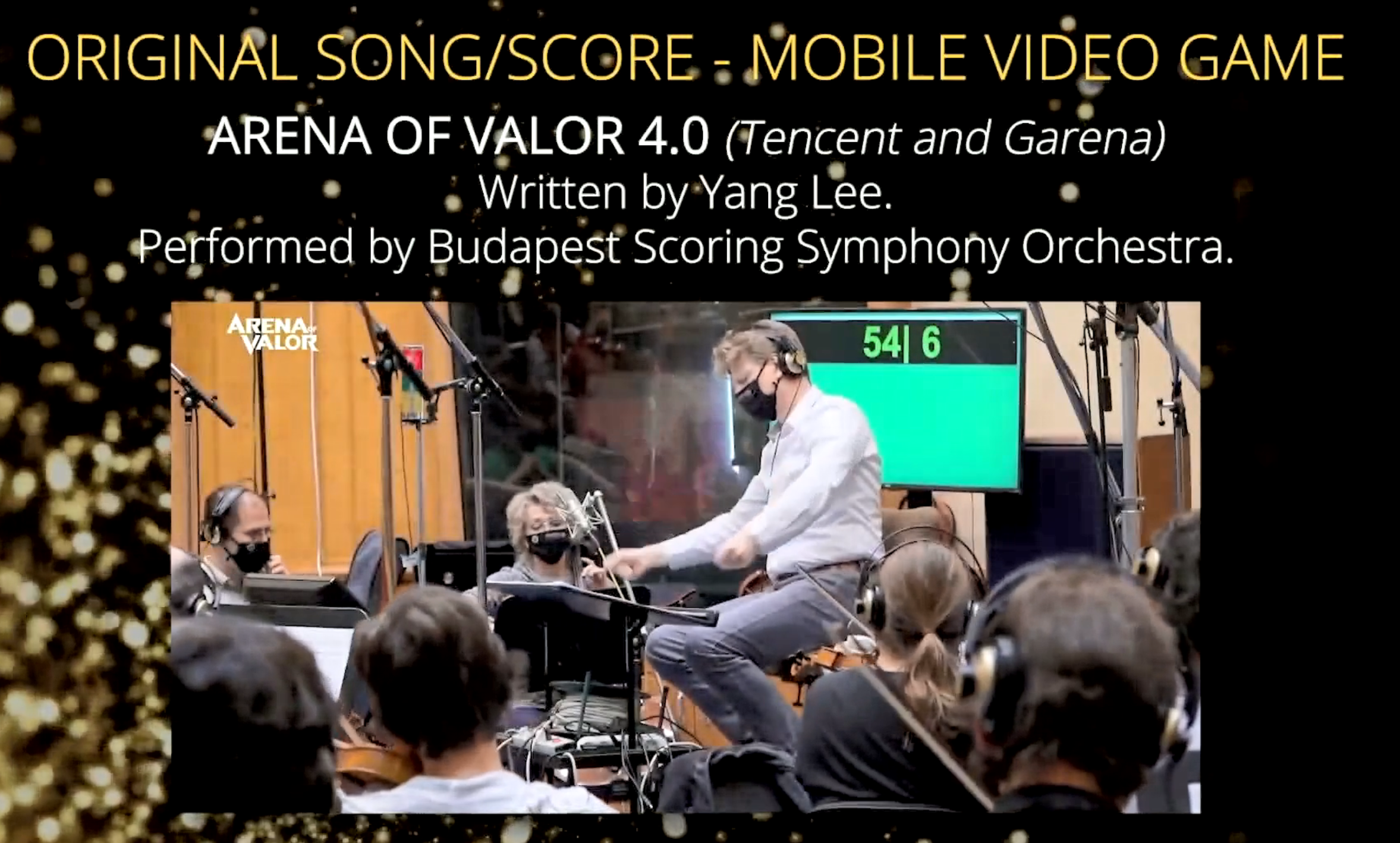就在几日前,由中国团队设计创作的王者荣耀国际版(下简称AoV)4.0英雄主题曲,一举拿下了2021好莱坞音乐传媒大奖(下简称HMMA)“最佳手机游戏原声音乐奖”。