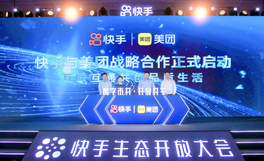 发布会现场,快手与美团宣布达成互联互通战略合作。双方将基于快手开放平台,打通内容场景营销、在线交易及线下履约服务能力,共同为用户创造「一站式」完整消费链路。