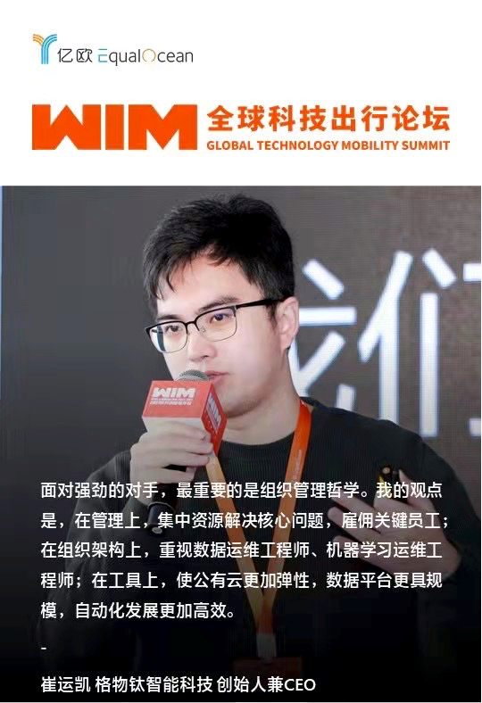 WIM2021-全球科技出行论坛在12月21-22日在上海成功召开,格物钛创始人兼CEO崔运凯发表了题为《AI组织的未来——自动驾驶场景下的制胜关键》的主题演讲。