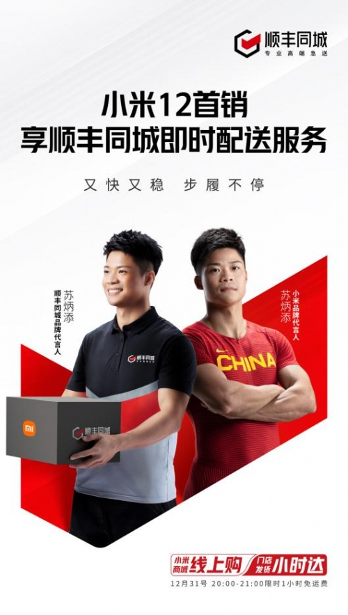 他们有相同的品牌代言人苏炳添。对顺丰同城而言,即时配送和亚洲飞人可谓是天然的结合,“快”是即时配送的最典型特征,而“快”也是人们对苏炳添的最直观了解。顺丰同城选择苏炳添为代言人,旨在传递其努力拼搏和超越自我的精神,追求快又稳的服务体验。而同样选择苏炳添作为品牌代言人的小米,自成立以来就专注打造高品质产品,同样认可苏炳添的奋斗精神。在共同代言人的加持下,两个国产品牌迎来了一次精彩碰撞,带来“1+1>2”的品牌效应。