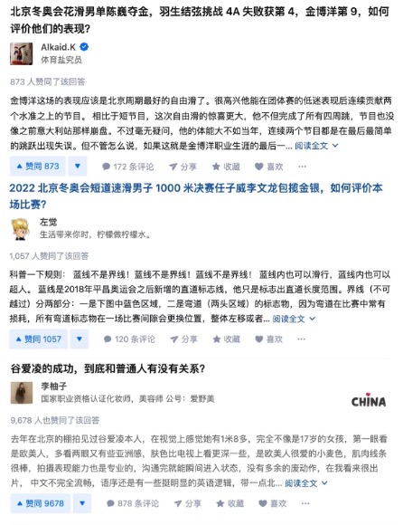 不同于在其他平台上「吃瓜」「追星」,知乎产出了大量专业和全面的内容,吸引了「双奥导演」张艺谋、北京冬奥会——奥林匹克教育、国家体育总局训练局——冠军之路组织委员会等亲自作答,极大满足了观众渴望深度了解赛事的需求。知乎「技战术大师」的美名再度传扬,也让「聊比赛上知乎」深入人心。