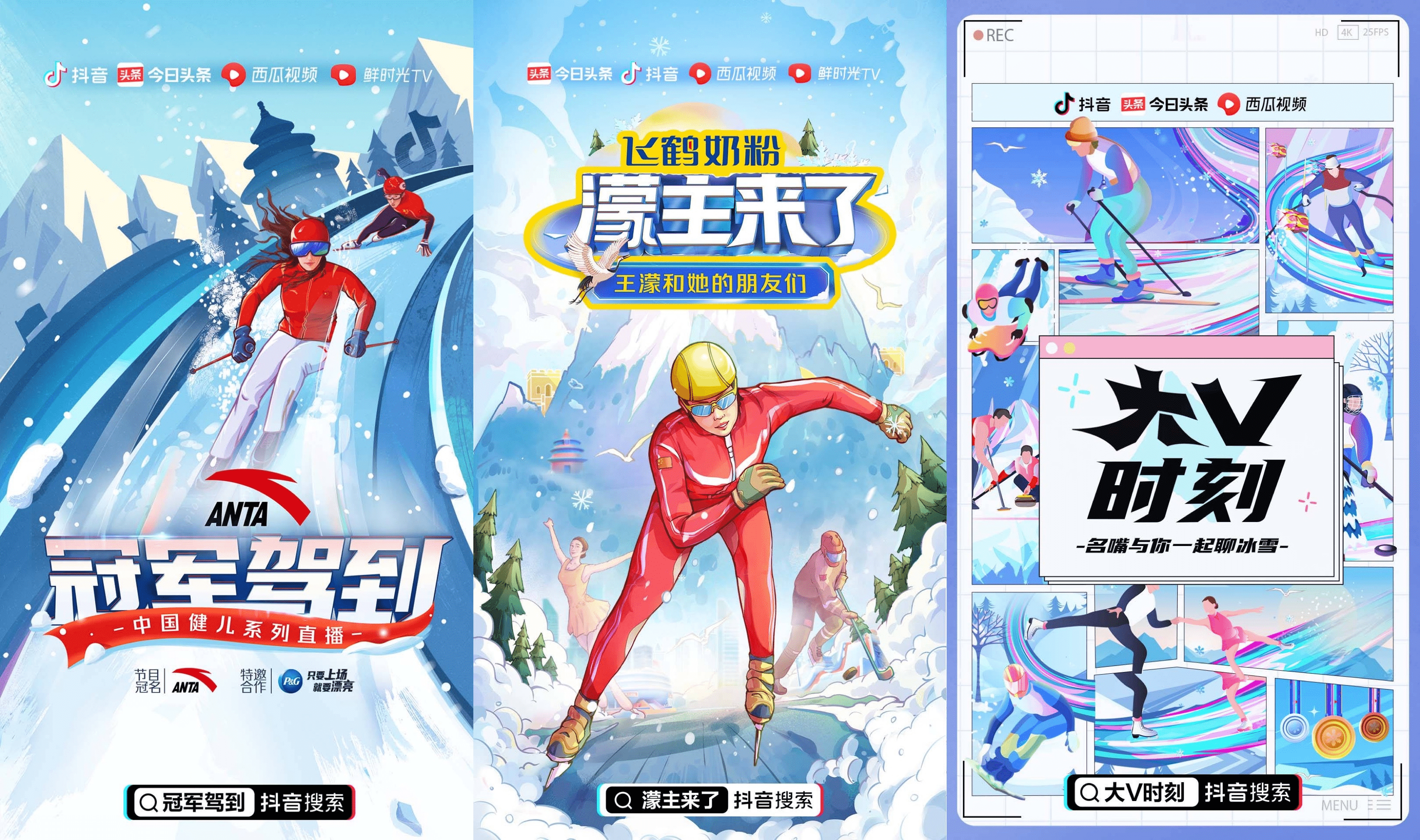 抖音的三档直播栏目【冠军驾到】【濛主来了】【大 V 时刻】分别从不同角度刷新着用户的冰雪体验。