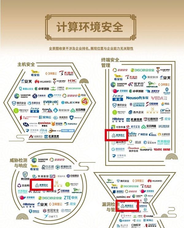 3 月 31 日,国内网络安全权威机构安全牛发布了第九版《中国网络安全行业全景图》(以下简称全景图)。首次入选的北京赛博昆仑科技有限公司(以下简称「赛博昆仑」)表现亮眼,共入选 4 个一类安全领域(计算环境安全、云计算安全、安全支撑技术与体系、网络安全服务等)中的 6 个二级细分领域 (终端安全管理、威胁检测和响应、漏洞检测和管理、云基础设施安全、APT 高级威胁防护、攻防演练等)。
