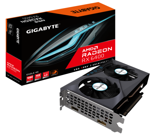 2022 年 4 月 20 日—技嘉科技-主板、显卡和硬件解决方案制造商, 隆重推出最新一代 Radeon RX 6400 系列显卡, 采用突破性的 AMD RDNA™ 2 架构, 推出 Radeon RX 6400 EAGLE 4G 与 Radeon RX 6400 D6 Low Profile 4G 显卡。两张显卡有技嘉优异散热系统的加持, 加上 AMD Infinity Cache™, 以及 4GB 的专用 GDDR6 显存, 能让玩家沉浸在顺畅的 1080P 游戏中, 享受出色的 1080p 游戏和卓越的画面速率。EAGLE 显卡导入了技嘉风之力散热系统, 是专为追求独特设计的游戏玩家设计, 兼具性能与耐用的选择。D6 Low Profile 显卡则是设计给小型机箱使用, 半高卡的设计可以轻易安装到各种机箱里。