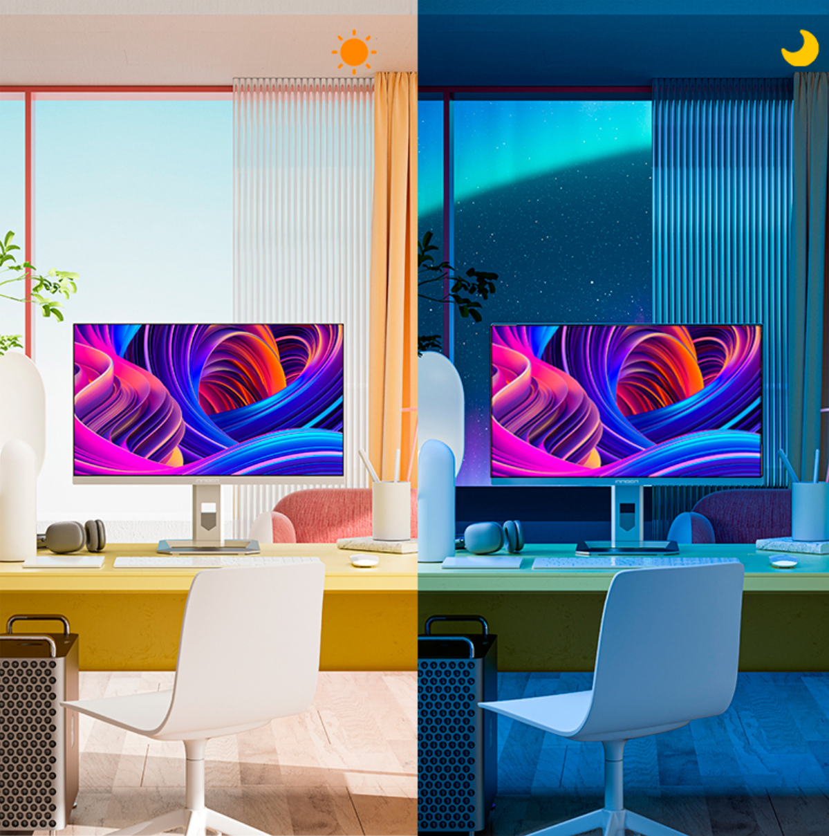 好的显示,还需要有好的设计细节,苹果屏幕受广大用户喜爱的原因之一是屏幕亮度可以随着环境光而自适应调整到舒适的亮度。INNOCN M2U 内置光线传感器,可以根据环境光线的变化,智能将显示器亮度调整至和苹果笔记本屏幕亮度一致的效果,适应各种使用场景,长时间使用让双眼更舒适。INNOCN M2U 配备可升降旋转的底座,不仅可以大幅降低使用者的疲劳,而且内置重力感应器,可智能识别产品横竖屏状态,并自动切换系统的显示方向,这让需要横竖屏切换的设计用户,也是一大福音。