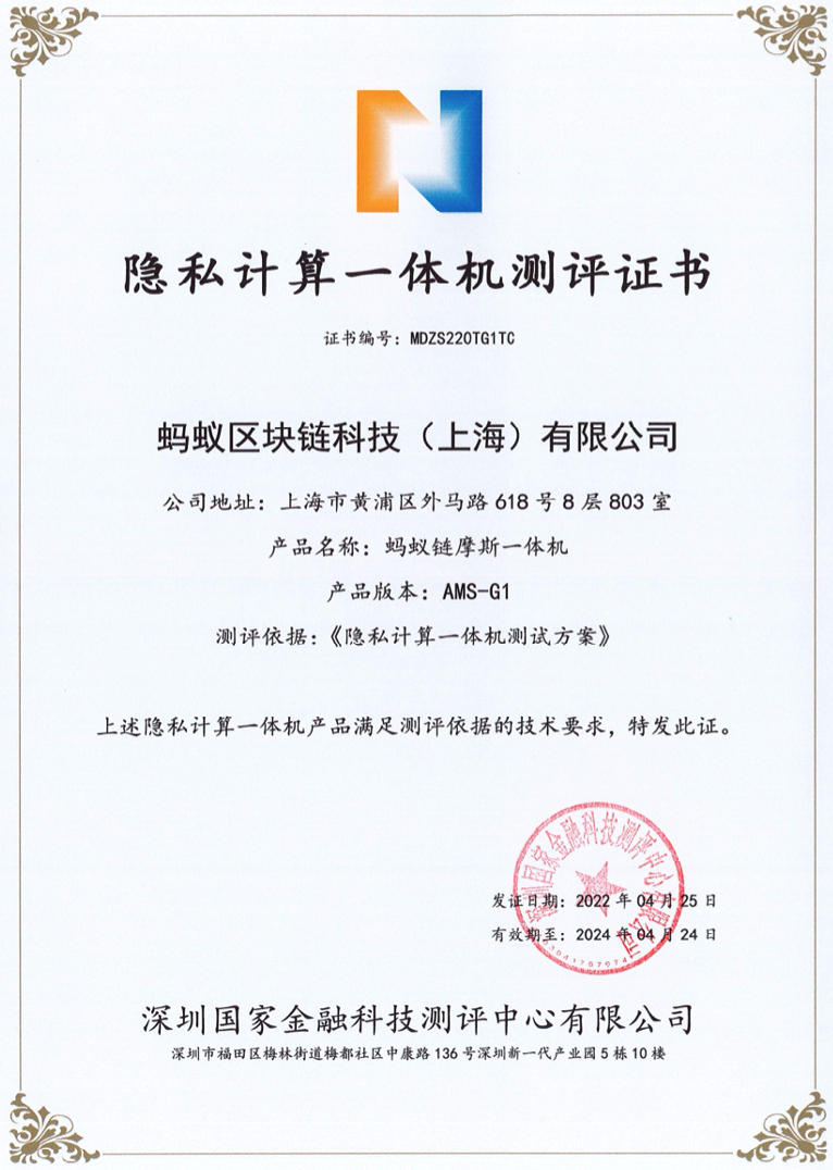 近日,蚂蚁链摩斯隐私计算一体机全项通过了深圳国家金融科技测评中心的测评,标志着该产品整体