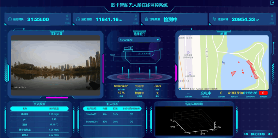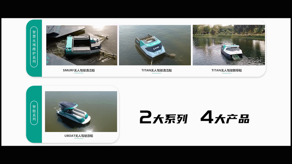 在行业应用标准产品方面,欧卡智舶聚焦无人驾驶环保船,经过百次迭代,根据不同的水域类型和需求,研发打造 3 款标准化的产品进行水面清洁、水草收割、水质监测、水域巡检等工作,配合自研的无人充电坞以及无人船智慧管理平台,形成智慧水域运维解决方案,从而实现全智能、数据化的水域环保运维作业及管理闭环。
