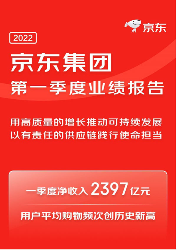 北京时间 5 月 17 日,京东集团发布了 2022 年第一季度业绩。2022 年第一季度,京东集团净收入为 2,397 亿元人民币(约 378 亿美元),同比增长 18.0%。