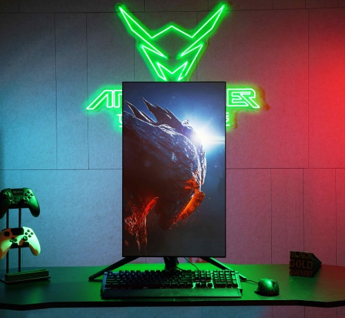 不得不说,蚂蚁电竞 ANT27VU 是一台专为增强游戏玩家的感官而设计的 4K 144Hz 电竞显示器。背部氛围灯开屏即亮并通过不断变化的 RGB 色彩营造出曼妙的游戏氛围,顶部的蚂蚁电竞图腾同时会发出暗幽绿光芒,炫酷的信仰氛围灯简直是为热血游戏玩家量身定制。
