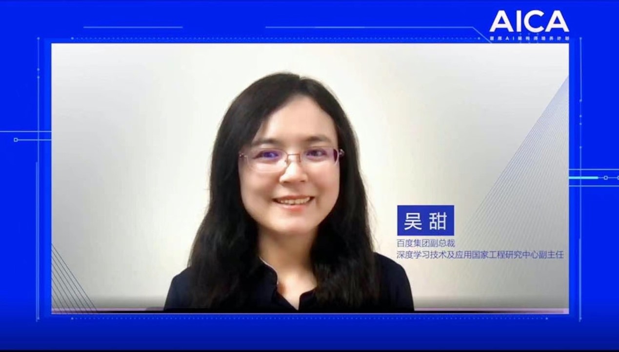 百度集团副总裁、深度学习技术及应用国家工程研究中心副主任吴甜在 AICA 六期开学典礼致辞