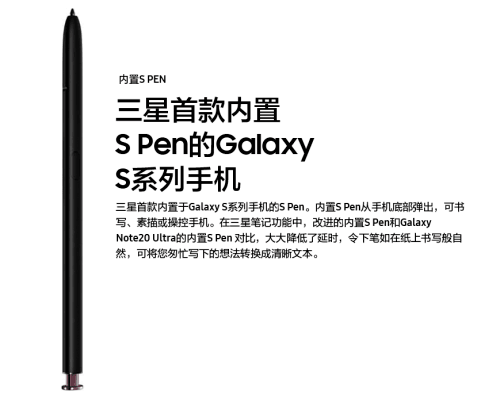 三星S Pen继承了文字书写的内涵,并拥有着极强的实用性。一方面,在S Pen不断演进的过程中成为了生产力和创作力的代名词,持续改善着人们的办公体验。另一方面,将简约和优雅的气度深入骨髓,演绎为三星高端旗舰的标识和潮流风尚,彰显人们的品位和文化修养。此次,三星Galaxy S22 Ultra突破性地采用了内置S Pen的设计,用即取出,毕则收回,张弛有度的洒脱,游刃有余的干练,对于讲究悦己愉人的Z世代用户来说,可谓是恰到好处。