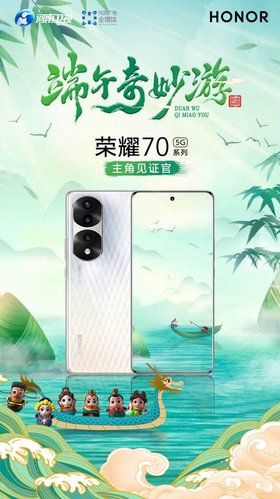 从荣耀 50 系列、荣耀 60 系列再到荣耀 70 系列,荣耀数字系列始终坚持对极致用户体验的追求,持续科技创新,坚持做最懂年轻人的潮流手机。而河南卫视《端午奇妙游》作为以内容创新承载文化自信崛起的优秀代表,以高屋建瓴的姿态,突破近年来娱乐化当道的固有模式,从文化本体中积极探索更适合当代人吸收的创作道路,助推年轻群体回归文化自信。我们有理由相信,双方的合作能够为中国传统文化注入创新的基因,让传统文化在年轻人群中展现更大的魅力。