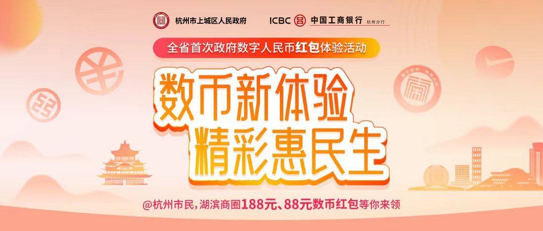 今年以来,杭州上城区人民政府落实省市促进经济稳进提质政策要求,以数字消费为主线,推出一系列「促消费、扩内需」措施。本次活动是浙江省首次政府数字人民币红包活动,将助力在湖滨商圈打造体现杭州韵味的数字人民币应用场景。