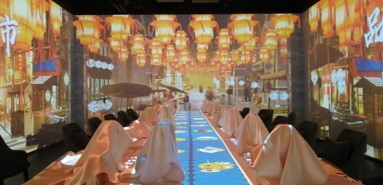 虽然市面上发力短焦、超短焦的投影产品不在少数, 但理光拥有全球最大的短焦镜头设计, 在技术方面更为成熟可靠。北京烤鸭老字号的全聚德, 就曾使用 8 台理光高端激光工程投影机, 搭配短焦镜头, 通过桌面创意互动即 360 度全景数字化内容输出, 将老北京传统文化和烤鸭美食文化深度融合, 突破了传统餐厅的单一、乏味, 不仅美化了餐厅环境, 更让就餐范围充满了科技味和时尚感。理光投影机将美食创意与科技创新充分结合, 为食客们带来了一场全新的感官饕餮盛宴。