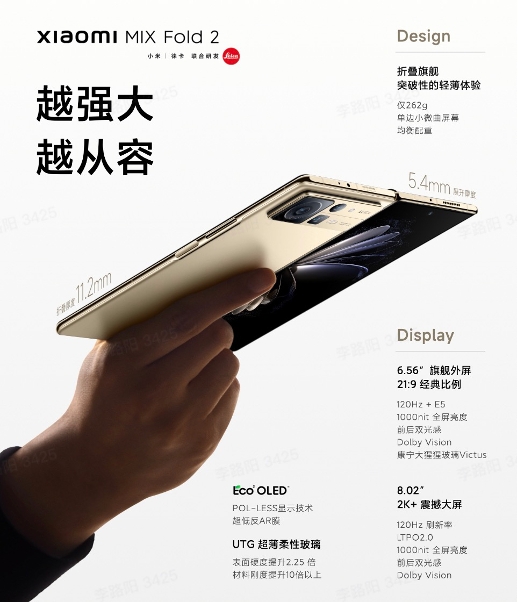 小米 MIX Fold 2 的发布, 是小米在折叠屏旗舰的又一次创新, 突破折叠屏最后一公里, 助推折叠屏技术进入真正实用好用阶段。小米 MIX Fold 2 新一代折叠旗舰, 看得见的薄, 性能强悍, 能效出色, 延续原汁原味的徕卡影像,8 月 16 日早上 10 点, 小米 816 感恩季重磅开售, 售价 8999 元起。
