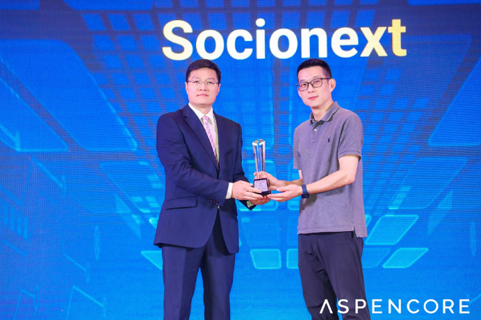 图:Socionext 中国总经理赵辉(右)接受颁奖