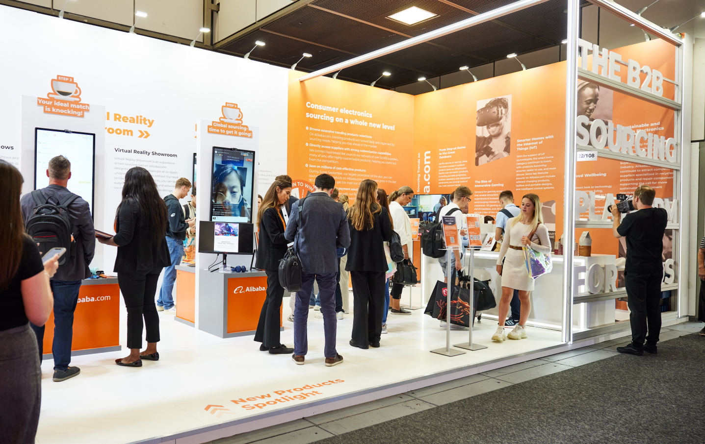 (图注:阿里国际站在德国电子消费品展 IFA 的线上线下联动「混合展」展台)