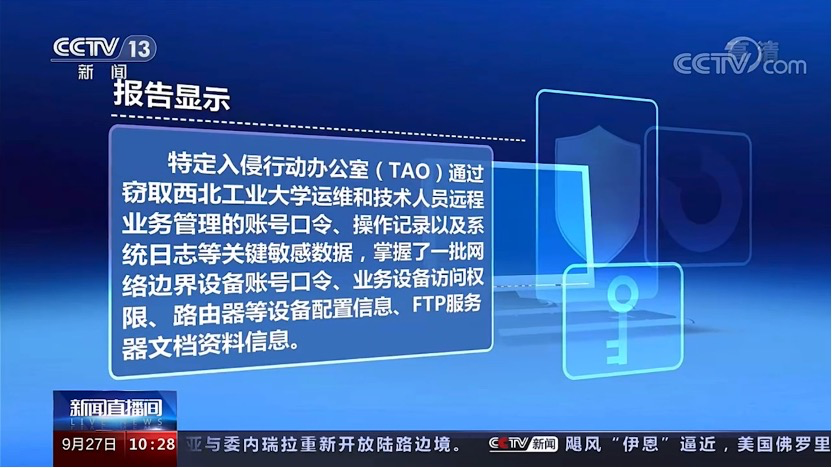 报告显示,TAO 对他国发起的网络攻击战术针对性强,此次针对西北工业大学的网络攻击,采用单点突破、级联渗透的方式,控制了西北工业大学网络。随后通过隐蔽驻留、「合法」监控的方式,窃取核心运维数据,随即搜集身份验证数据、攻击渗透通讯基础设施企业,构建了对基础设施运营商核心数据网络远程访问的「合法」通道,实现了对中国基础设施的渗透控制,最终实施用户数据窃取,其中包含一批中国境内敏感身份人员信息。