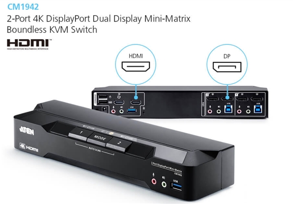 随着多任务工作逐渐成为常态, 应对挑战的关键是提升其处理能力。当涉及到同时执行多项任务时, 人机工程学是保证生产力的重要因素。而当与分散的远程团队沟通时, 有效的协作工具是至关重要的。CM1942 是一款面向未来的迷你矩阵式 KVM 切换器, 可在两台电脑/显示器之间进行灵活、无限制的 KVM 切换, 从而最大限度地提高工作站的效率, 重新构想您的工作空间。CM1942 整合了快速的外围数据共享、音频混合器、多屏幕效率和热桌灵活性, 通过简化桌面任务和协作工作的工作流程, 促进生产力和更好的正常。