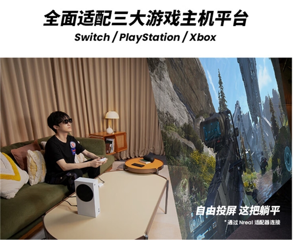 10 月 25 日,Nreal Air AR 眼镜迎来重大升级,正式适配 PS 和 Xbox 游戏主机,至此 Nreal 完成了 PS、Xbox、Switch、PC、Steam Deck、Windows 掌机等主流游戏设备的全面覆盖,为更多游戏玩家带来 130 英寸自由巨幕体验。