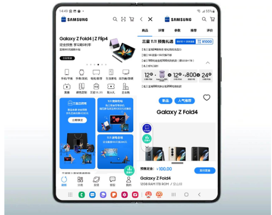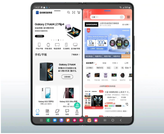 无论是选购商品时货比三家,还是抢购商品时拼手速,三星 Galaxy Z Fold4 升级的手势快捷分屏功能,都能带来意想不到的妙用。