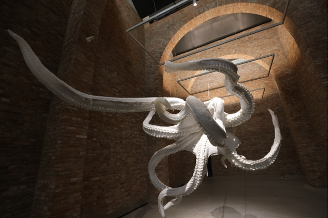 多种前沿科学复合交叉的艺术呈现是本届双年展的亮点之一,如:MIT 媒体实验室教授 Neri Oxman 借助生物技术、材料科学和数字制造技术设计「超自然」生态,在此之中,「生长」与「制造」交织互渗;英国艺术家 Alexandra Daisy Ginsberg 以数字化的形式复活已经消亡的物种,借此深刻反思新兴科技的力量赋予「存在」的意义;澳大利亚艺术家 Patricia Piccinini 的作品强调了不同生命形态之间的异质交错,这种对「混杂性」的致敬,揭示了我们与万物「共生起源」、忧患与共。