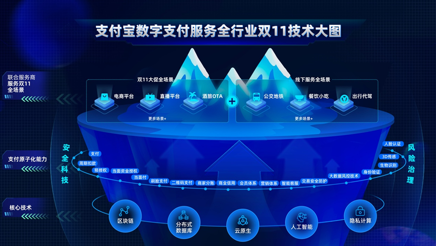 l 在技术创新上,双 11 技术大队长马聪介绍:构建了自适应、动态异步化技术及秒级高可用技术,在更加随机化的大促活动场景下持续保持支付可用性及高性能;实现退款、提现等业务服务不受损,保障大促期间的客户体验日常化;通过分时复用、在线离线混部、无感化弹云等创新技术,带来效率提升和成本下降,实现了更绿色的大促。