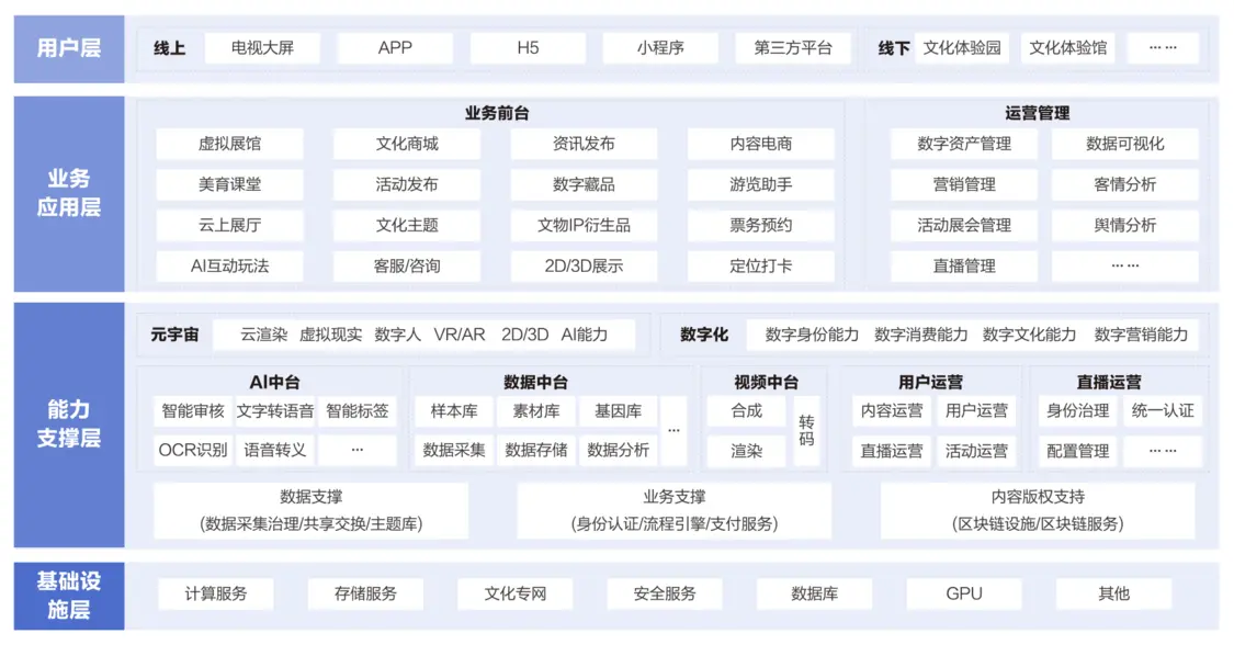 值得一提的是,针对近年发展迅猛的数字文化传播,腾讯云也推出了文化大数据建运一体的产品解决方案。在云底座、大数据等基础设施和能力之上,腾讯云为广电机构打造了领先的数字文化服务平台,从而打通传统文化生产和消费过程中存在的堵点与难点,实现文化遗产的数字活化,助力文化强国建设。