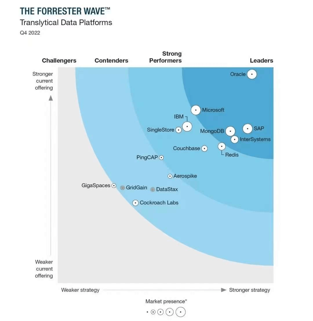 2022 年 12 月 6 日——国际权威研究机构 Forrester 发布了「Forrester Wave™: Translytical Data Platforms, Q4 2022」报告,企业级开源分布式数据库厂商 PingCAP 作为中国唯一入围的数据库厂商首次参评该报告即获评「卓越表现者(Strong Performers)」。