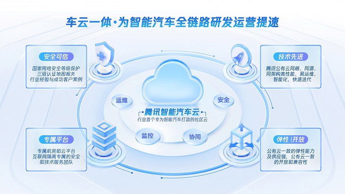 同时,腾讯还在专有云方面进一步助力智能汽车行业安全合规发展。今年 6 月,腾讯宣布在上海开设智能汽车云专区,这是行业首个专为自动驾驶与智能汽车领域建设的专有云平台。基于云专区,腾讯智能汽车云能够提供全栈物理隔离,保障相关数据的安全可信、自主可控。