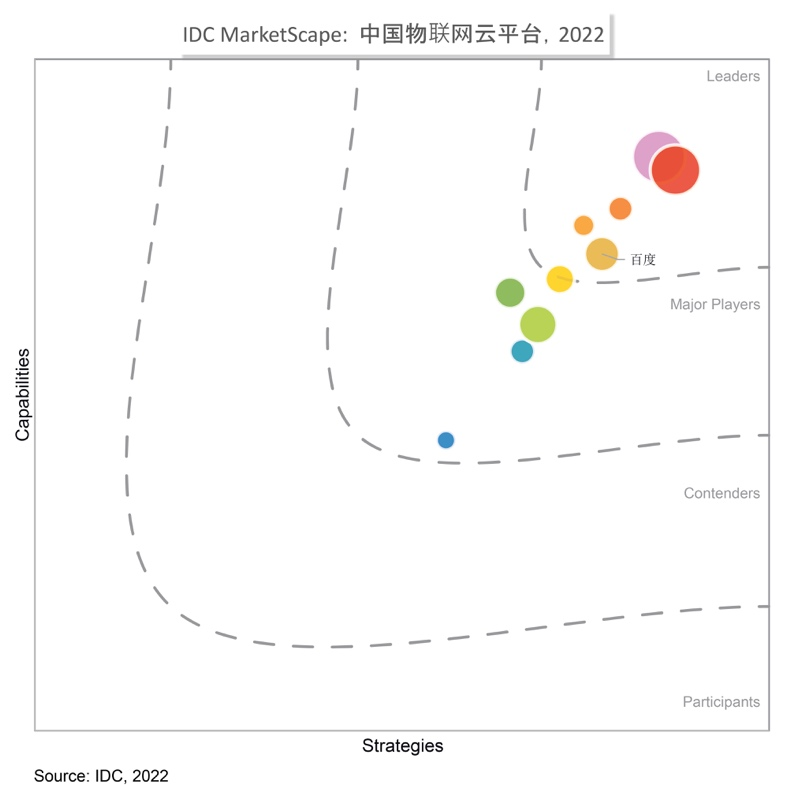 近日,国际权威咨询机构 IDC 发布最新报告《IDC MarketScape: 中国物联网云平台厂商评估,2022》,百度智能云凭借「云智一体」战略和高包容性、开放性的产品以及 AI 全栈能力,位居领导者象限。