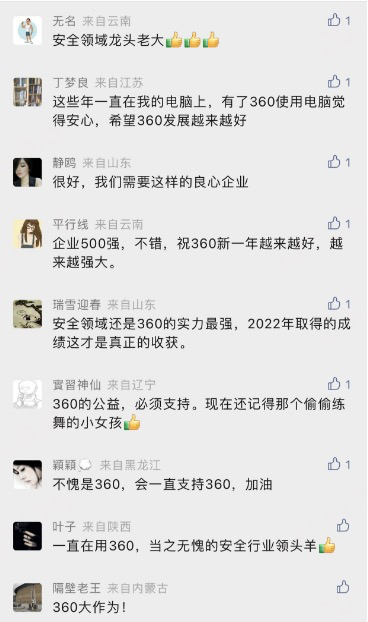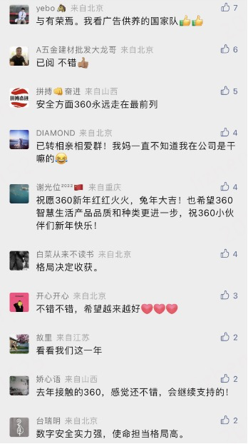 360 的这份年终奖一经发出,评论区里的网友们就按捺不住了。有资深用户感慨「与有荣焉,这是我看广告供养的数字安全国家队!」。据了解,360 创始人周鸿祎曾介绍过 360「奇葩」的商业模式——用广告收入反哺数字安全,并感谢用户的支持,让 360 公司得以持续加大自主创新研发投入,支撑国家攻克数字空间的「卡脖子」问题。