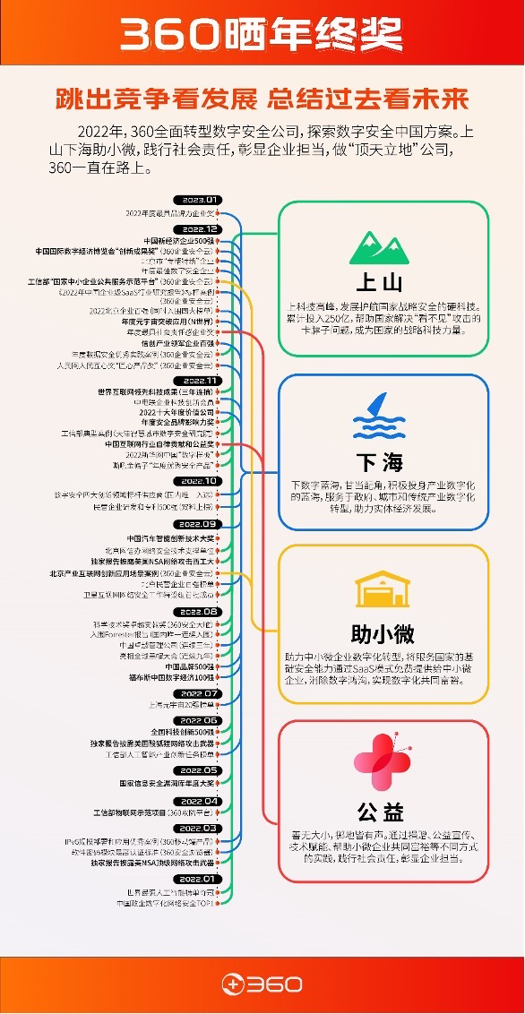 「上山」是指上科技高峰,发展硬科技,帮助国家解决数字空间的「卡脖子」问题。去年 360 双料上榜民营企业研发和专利 500 强,凭借「看见攻击」的强大能力,多次披露了美国情报机构对我国实施的网络攻击,捍卫国家数字安全主权。