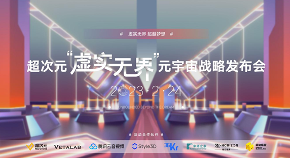 2023 年 2 月 24 日,超次元「虚实无界」元宇宙战略发布会在超次元元宇宙空间召开。本次活动由超次元主办,合作伙伴、业界翘楚和媒体代表等数名嘉宾齐聚一堂,共同见证超次元元宇宙战略规划发布,并围绕行业趋势、产业发展和未来前景等议题分享了元宇宙应用发展的最新成果。