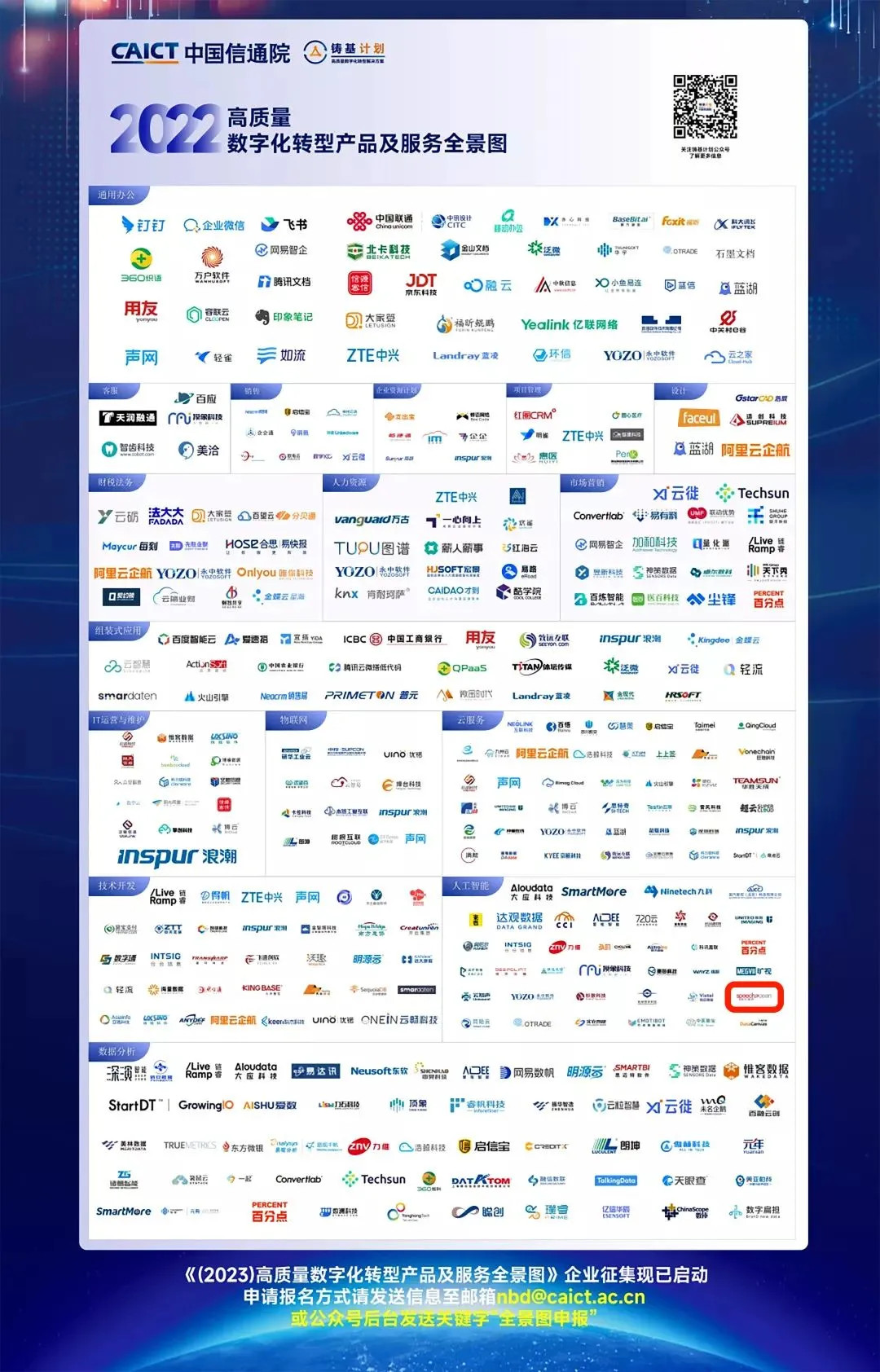 近日,由中国信息通信研究院 (以下简称「中国信通院」) 主办的高质量数字化转型创新发展大会暨中国信通院「铸基计划」年度会议在北京召开。本次大会展示了中国信通院在数字化领域的工作成果,并全面展望 2023 年行业的数字化发展趋势。会上正式发布《高质量数字化转型产品及服务全景图 (2022)》,海天瑞声作为人工智能场景的代表厂商入选。