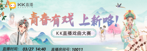 粉墨青春, 青春有戏!3 月 27 日, 正值世界戏剧日, 这个已经延续了 61 年的世界性节日, 无疑为人类带来更多宝贵的精神财富。而在今日 KK 直播特别地推出「青春有戏·上新咯!」系列之「旧曲新荟萃 跨界唱百音」活动, 邀请平台达人主播倾情演唱, 与广大直播间用户共同感受传统戏曲文化的魅力。